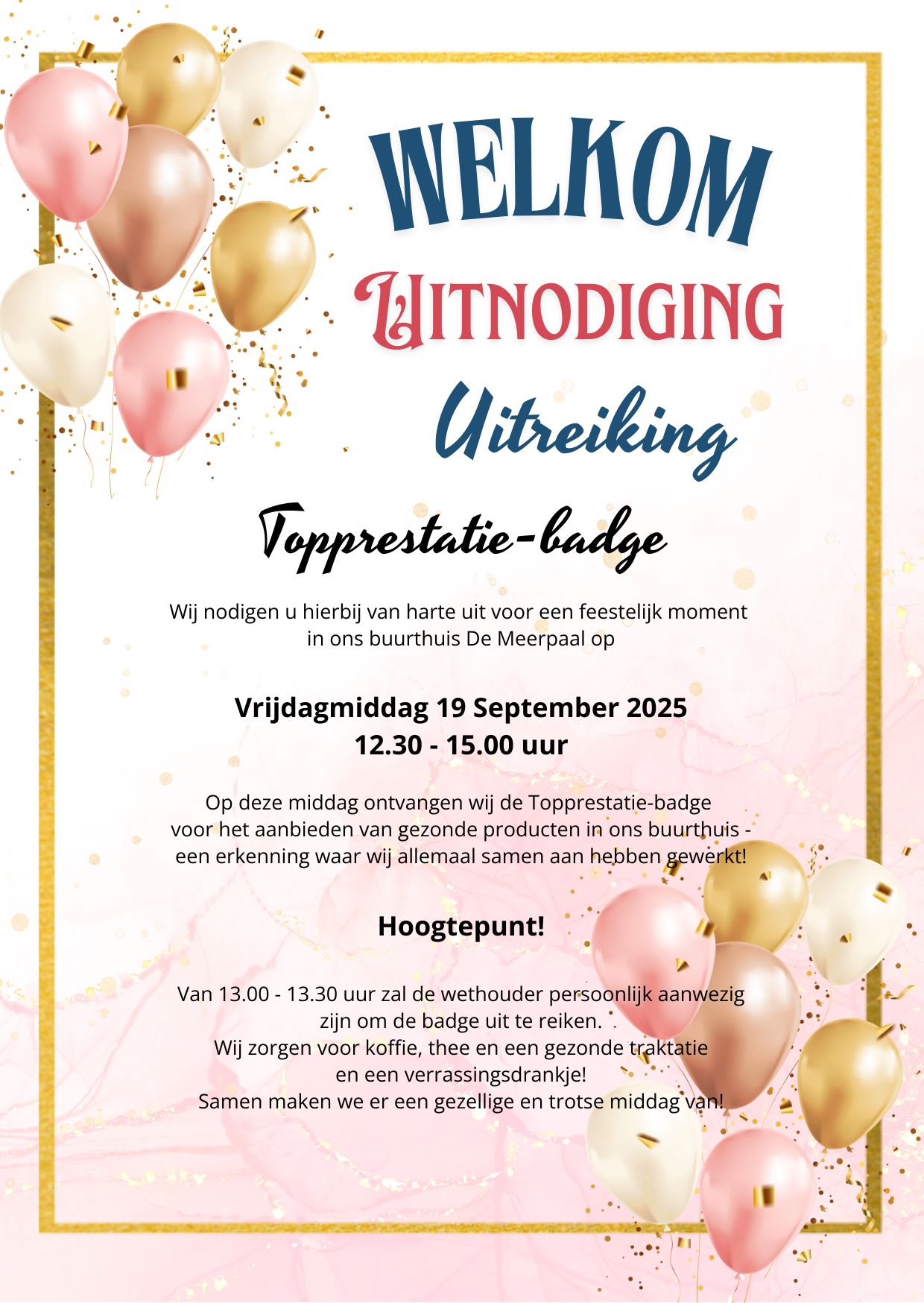 - Wat: Inloop met koffie, daarna 30-40 minuten bewegen onder begeleiding van Sportservice De Vallei, afsluiting met koffie/thee